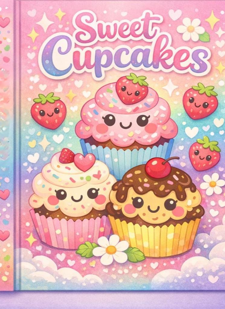 Dive into a world of sweetness with this adorable kawaii cupcake coloring book! Each page features cute, smiling cupcakes topped with colorful frosting, whipped cream, fruit, and sprinkles. The simple, bold designs make it perfect for kids, kawaii lovers, or anyone looking for a relaxing, creative activity.